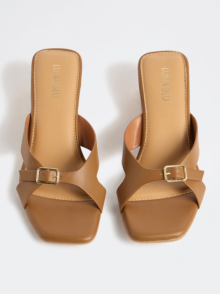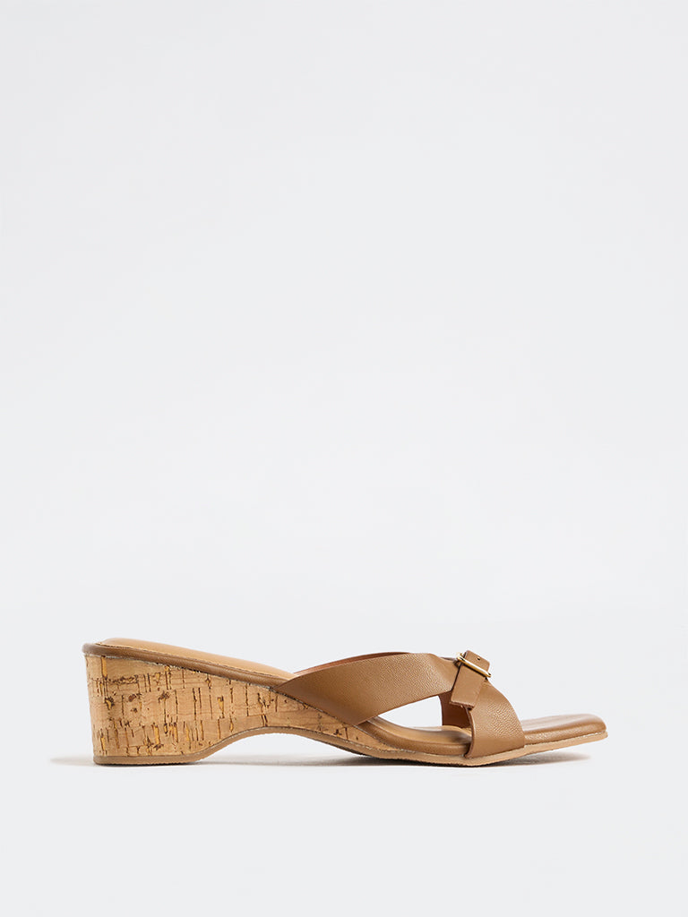 LUNA BLU Tan Buckle-Strap Wedge Sandals