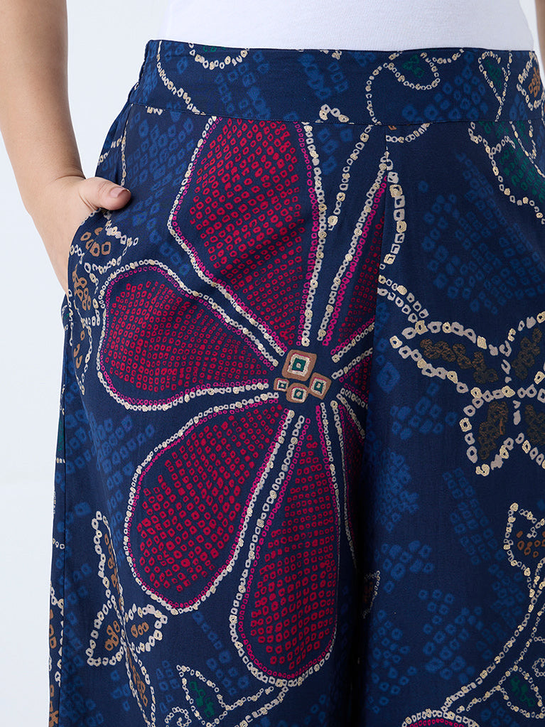 These indigo ethnic pants by Diza showcase bandhani floral prints for a polished look. Milled from a sumptuous fabric, they come fitted with an elasticated waistband and adjustable drawstrings for a secure fit, while side pockets add a functional bonus.