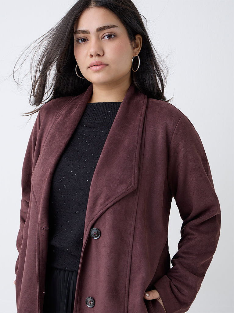 Crafted in soft suede for warmth and timeless appeal, this dark brown trench coat from Gia brings elegance to winter layering. The open front with fluid lapels creates a sophisticated silhouette, while full sleeves and practical pockets add everyday functionality.