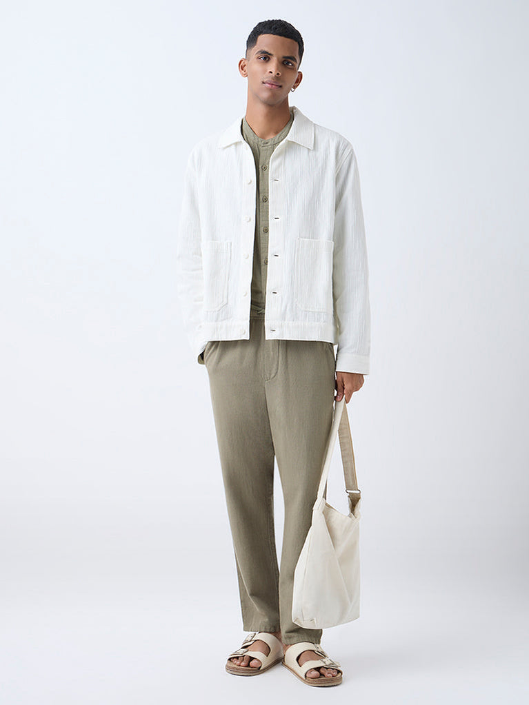 ETA White Textured Relaxed-Fit Cotton Jacket