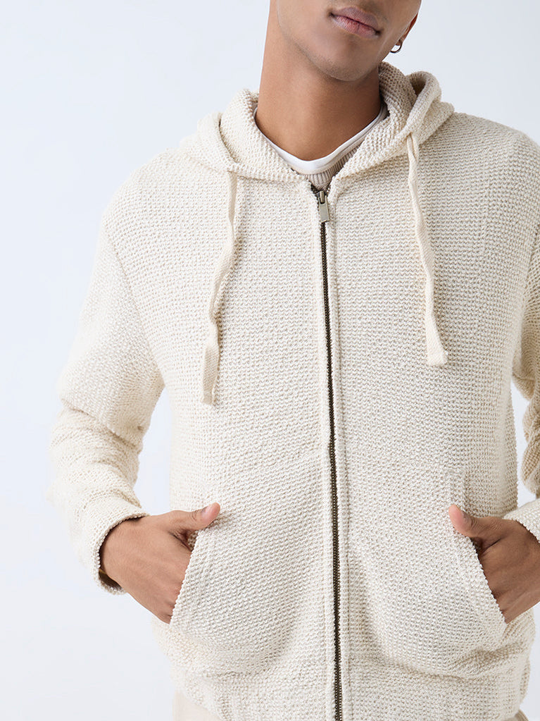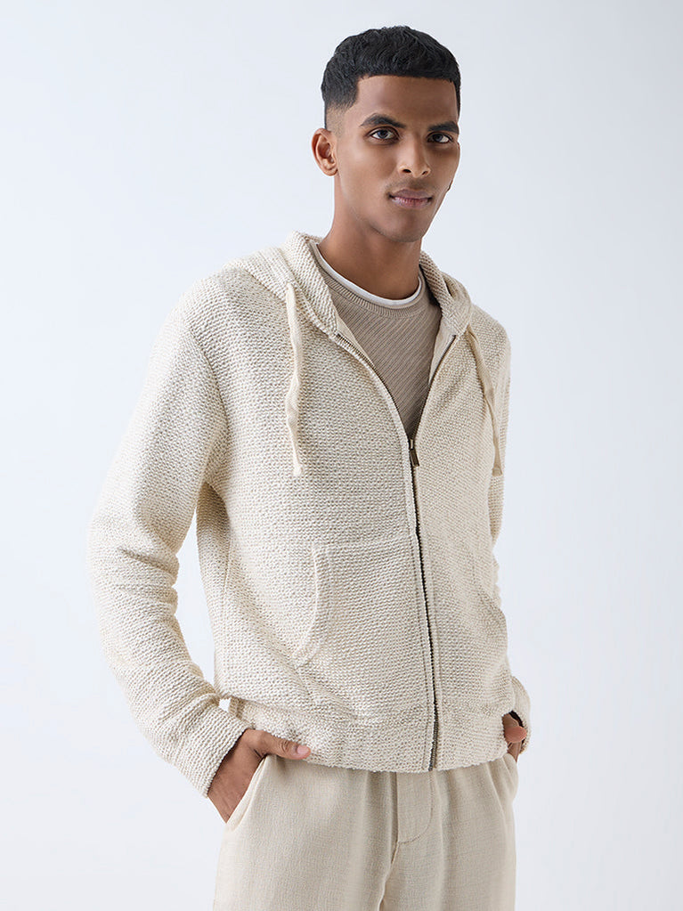 ETA Light Beige Textured Relaxed-Fit Hoodie