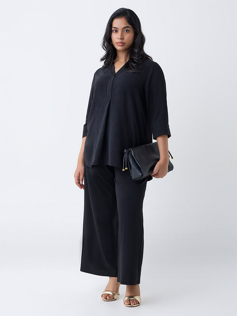 Gia Black Solid Mid-Rise Pants