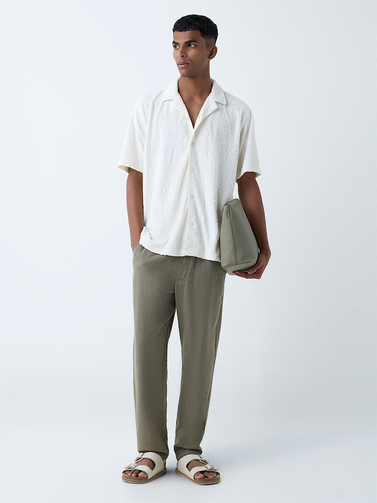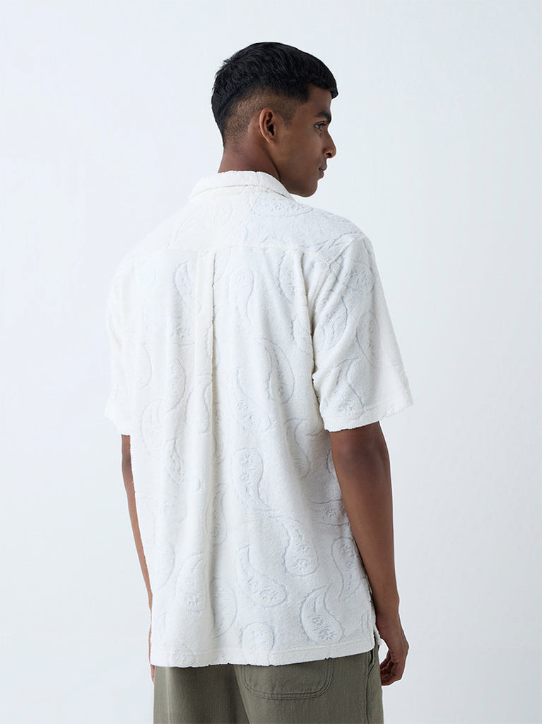 ETA White Paisley Design Relaxed-Fit Cotton-Blend Shirt