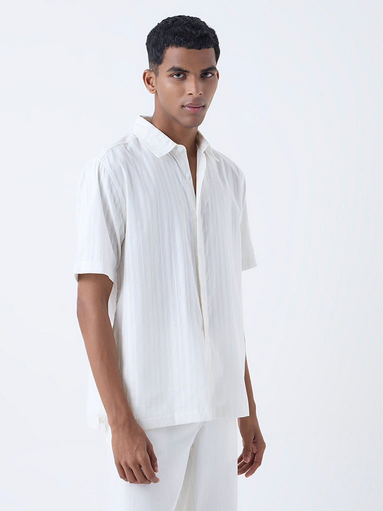 ETA White Self-Striped Relaxed-Fit Cotton Shirt