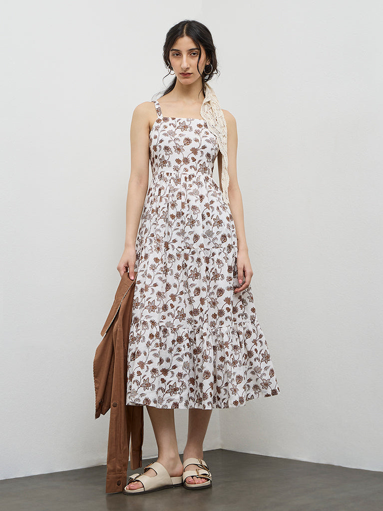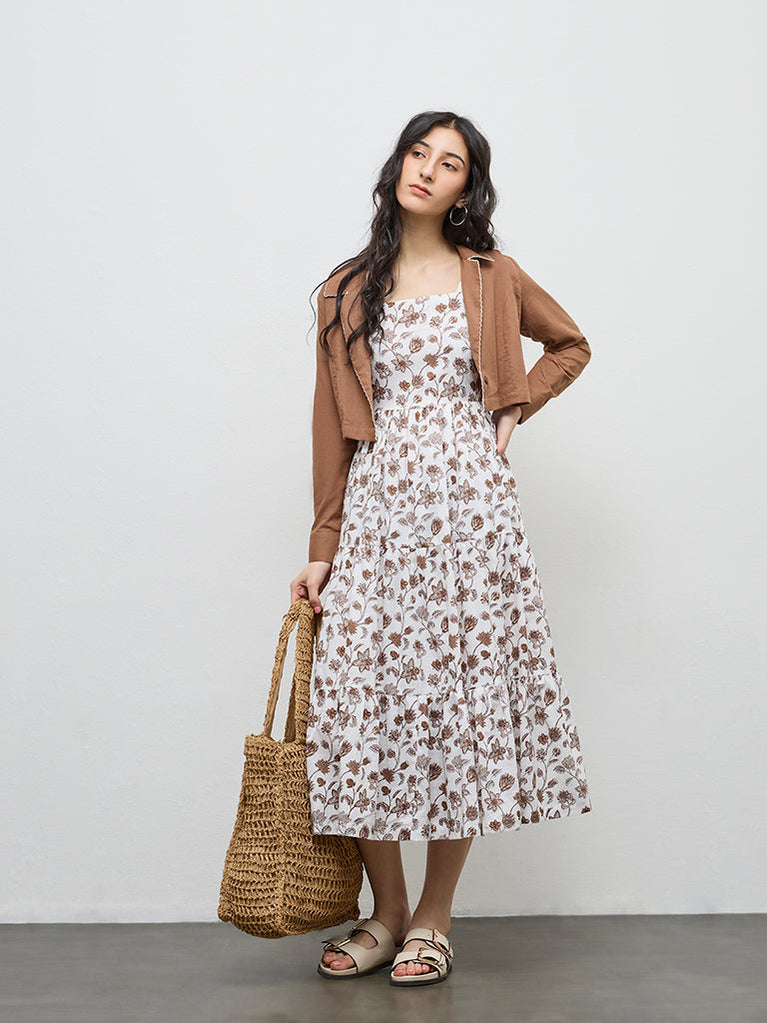 Bombay Paisley Brown Floral Cotton Tiered Dress with Jacket