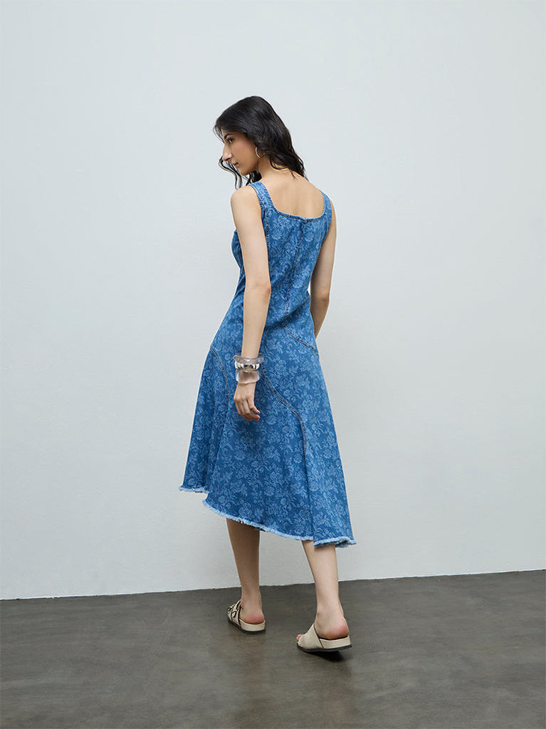 Bombay Paisley Blue Floral Denim A-Line Dress