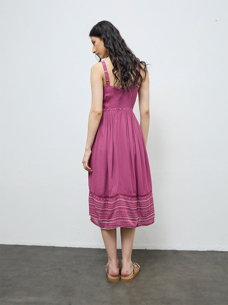 Bombay Paisley Dusty Rose Embroidered Empire-Line Dress