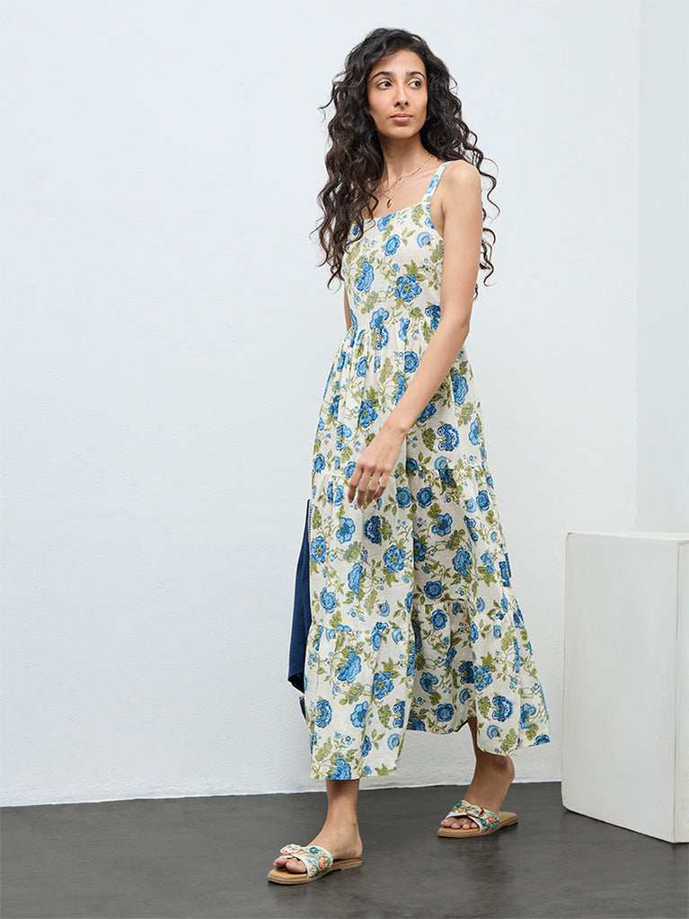 Bombay Paisley Off-White Floral Cotton Tiered Dress