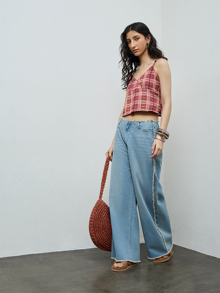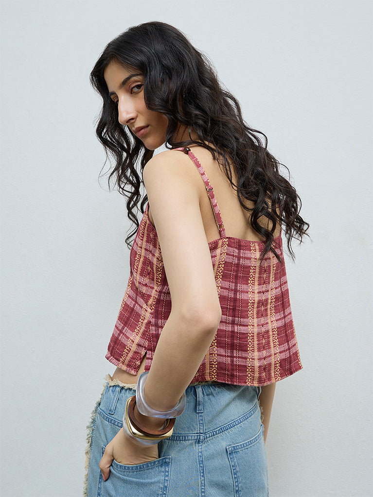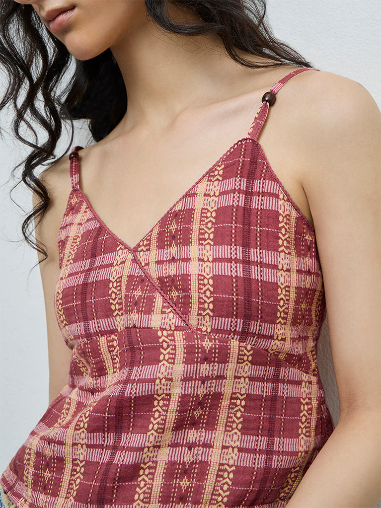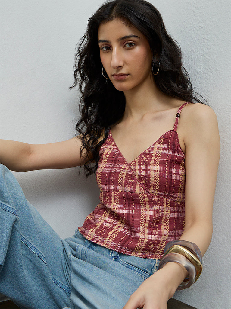 Accentuate feminine detailing with this dark pink top from Bombay Paisley, intricately embroidered throughout for a refined finish. Made from a cotton-rich fabric, it is styled with a flattering V-neck and adjustable shoulder straps, making it ideal for everyday wear.