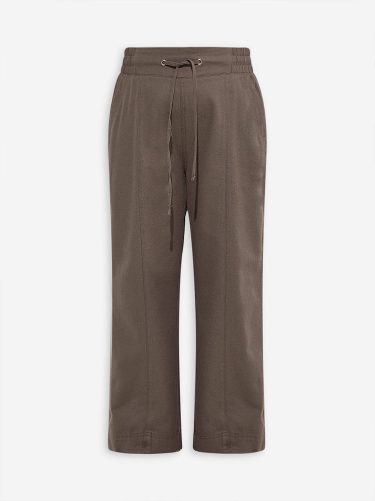 Gia Taupe Solid High-Rise Cotton Pants