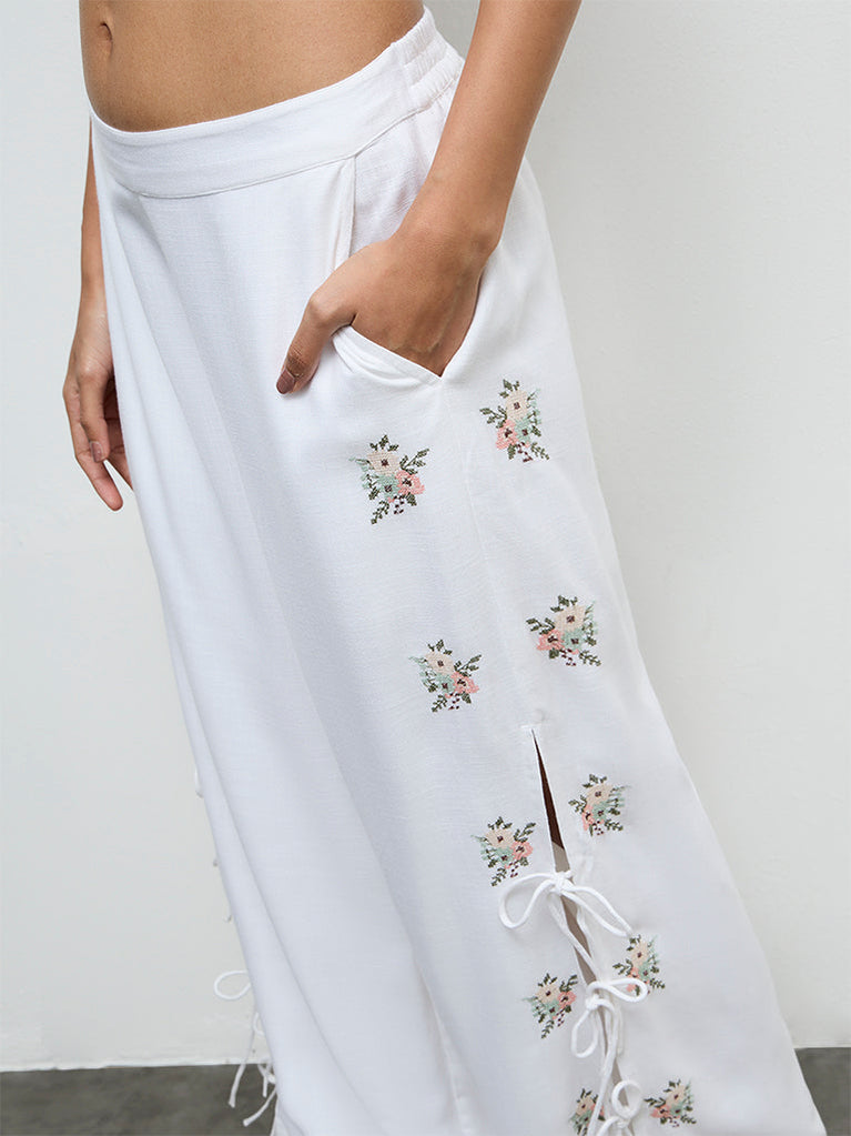LOV Off-White Embroidered High-Rise Pants