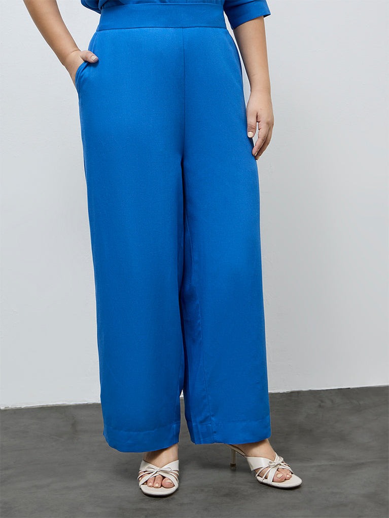 Gia Blue Solid High-Rise Pants