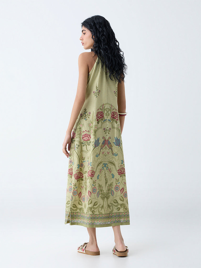 Bombay Paisley Sage Botanical Pattern Cotton A-Line Dress