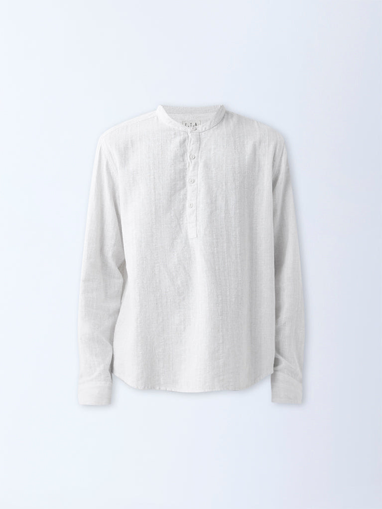 An understated essential with contemporary finesse, this light beige shirt from ETA is spun from soft cotton in a relaxed silhouette that moves with ease. The solid design is elevated by a band-neck collar and a minimal button placket, while full-length sleeves keep the look refined and versatile.