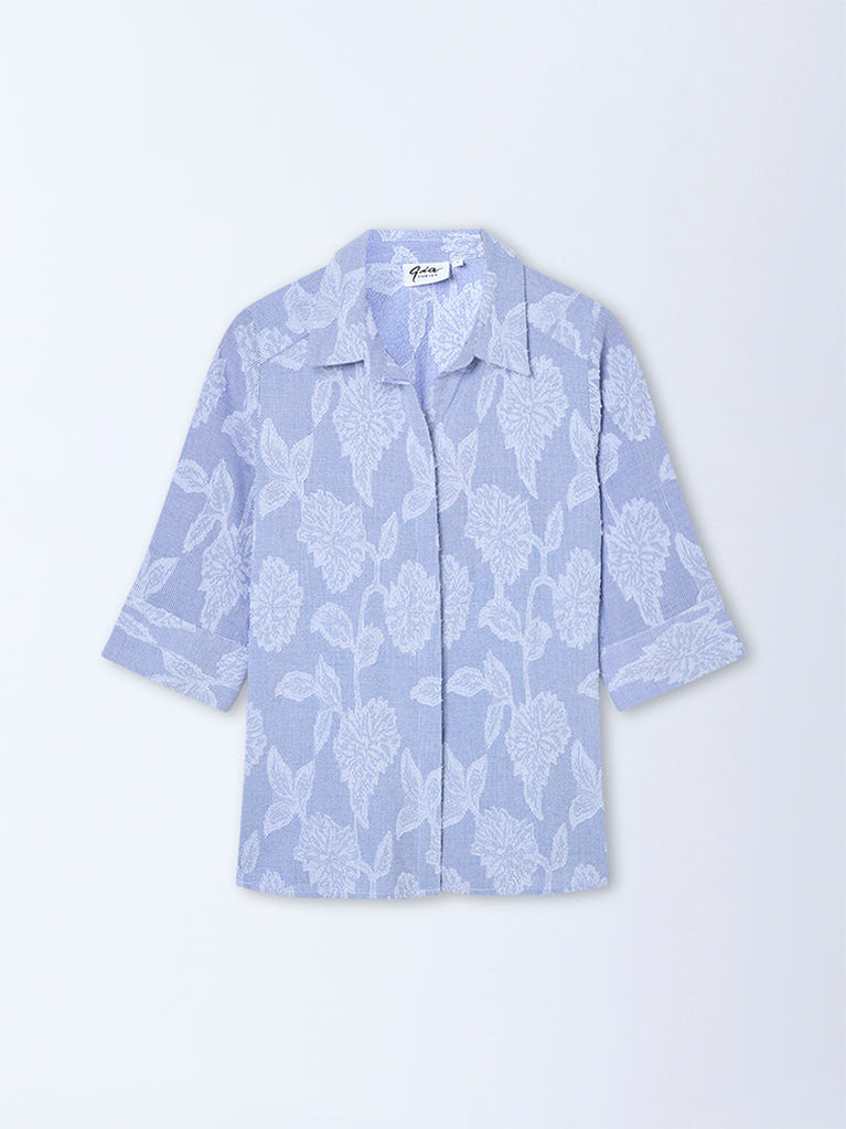 Bring a touch of nature to your wardrobe with this blue shirt from Gia, adorned with elegant botanical prints. Designed with a smart collar, concealed button placket and three-quarter sleeves, it’s a graceful addition to your off-duty style rotation.
