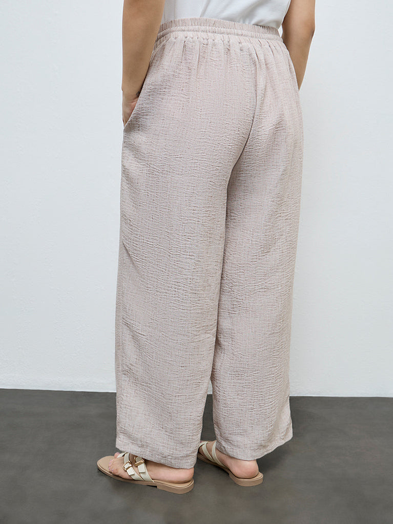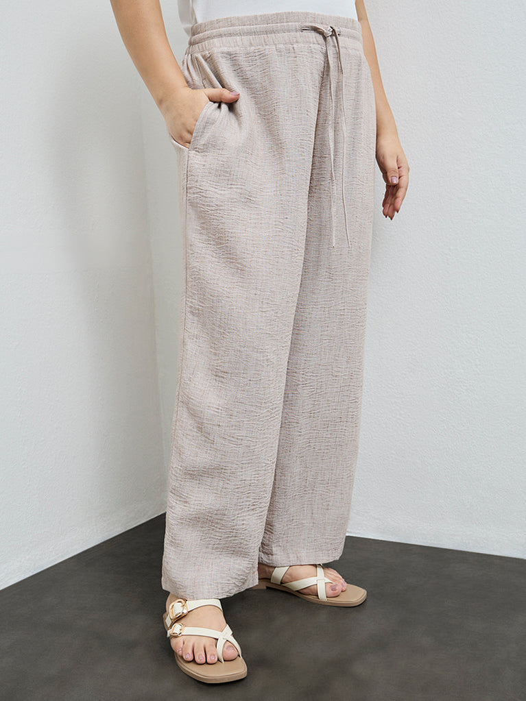 Perfect for days that call for comfort without compromising on style, these beige mélange pants from Gia are crafted from a breathable fabric. Designed with an elasticated drawstring waistband and side pockets, they offer relaxed ease with practical appeal.