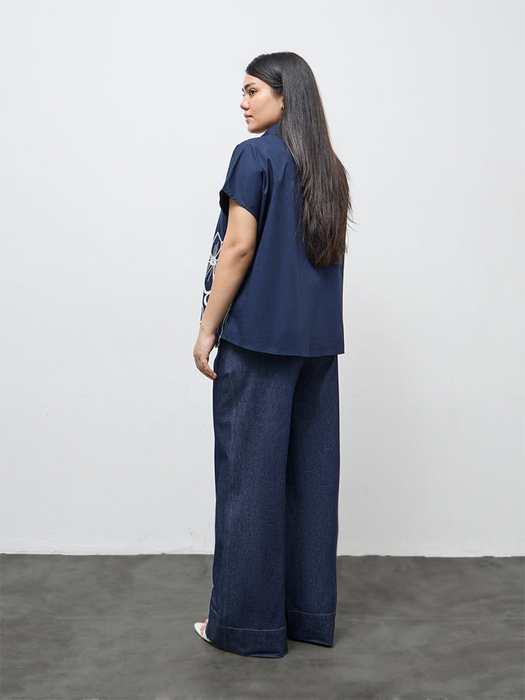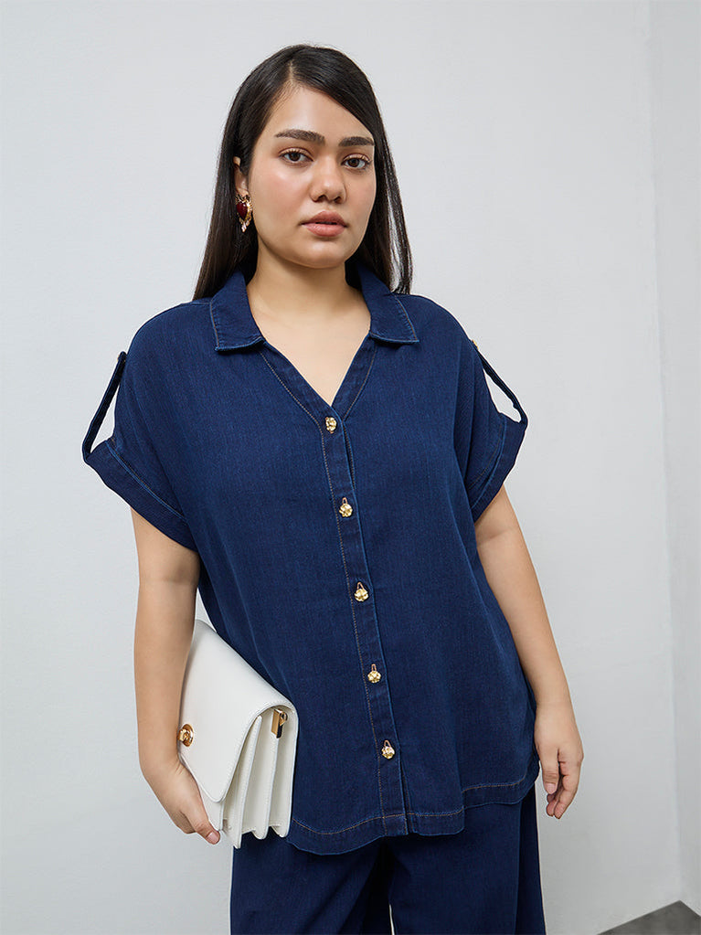 Elevate off-duty looks with this dark blue denim shirt from Gia, designed in a fluid, breathable fabric. The V-neck collar extends into a button placket, creating a flattering neckline. Upturned dolman sleeves add a relaxed, contemporary finish.