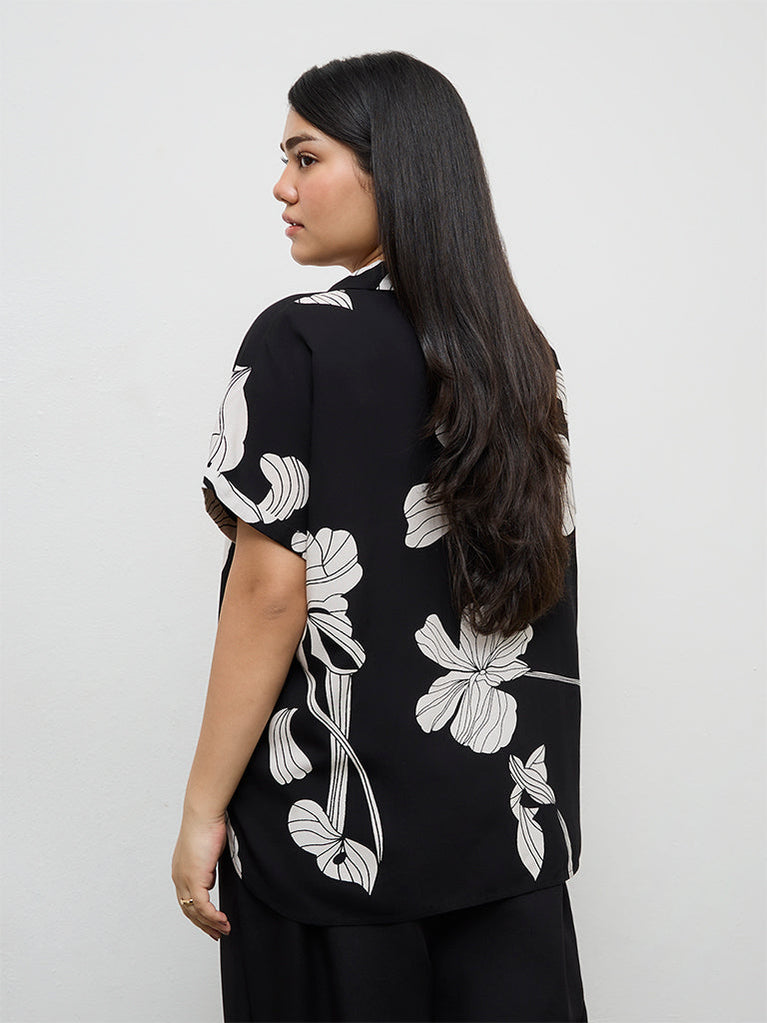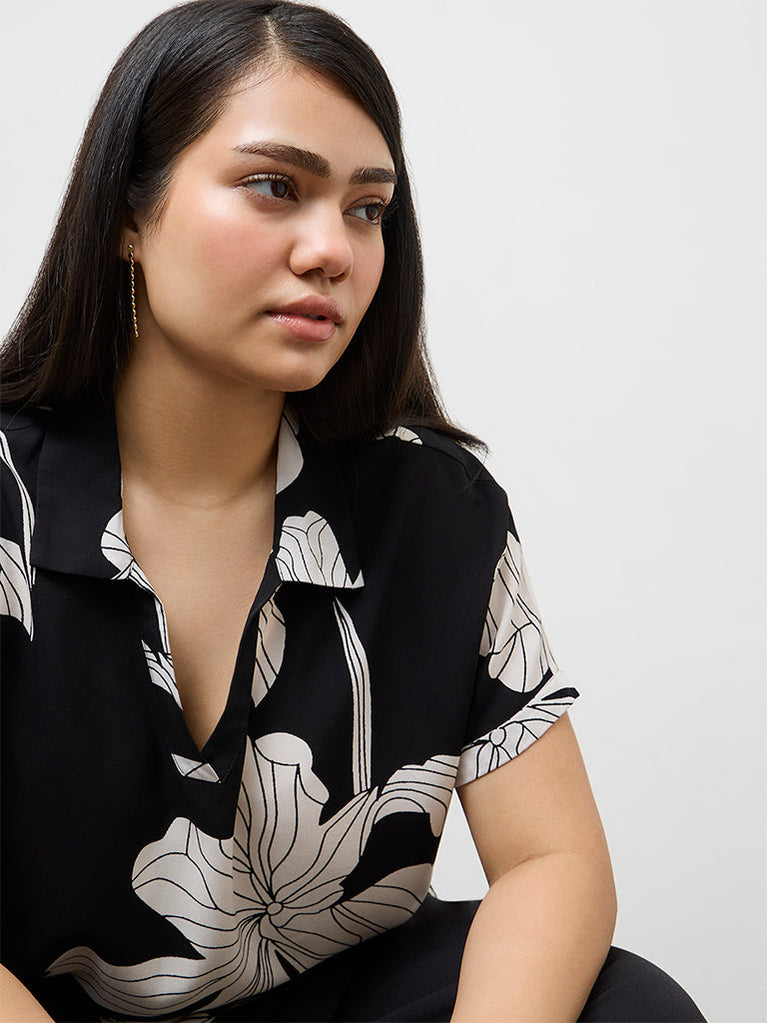 Gia presents this black blouse crafted from a premium fabric, offering a relaxed and comfy vibe. Featuring a V-neckline and short sleeves, it creates a casual, stylish look. Adorned with floral prints, this piece elevates your fashion basics, making it an effortless and chic addition to your everyday wardrobe.