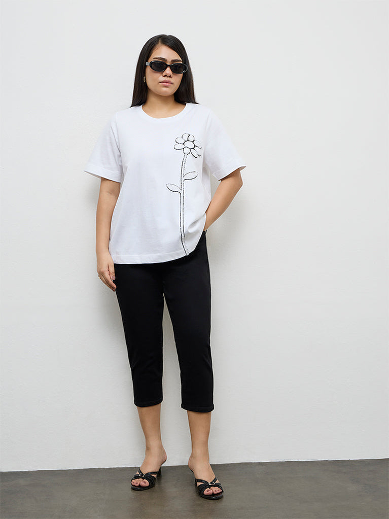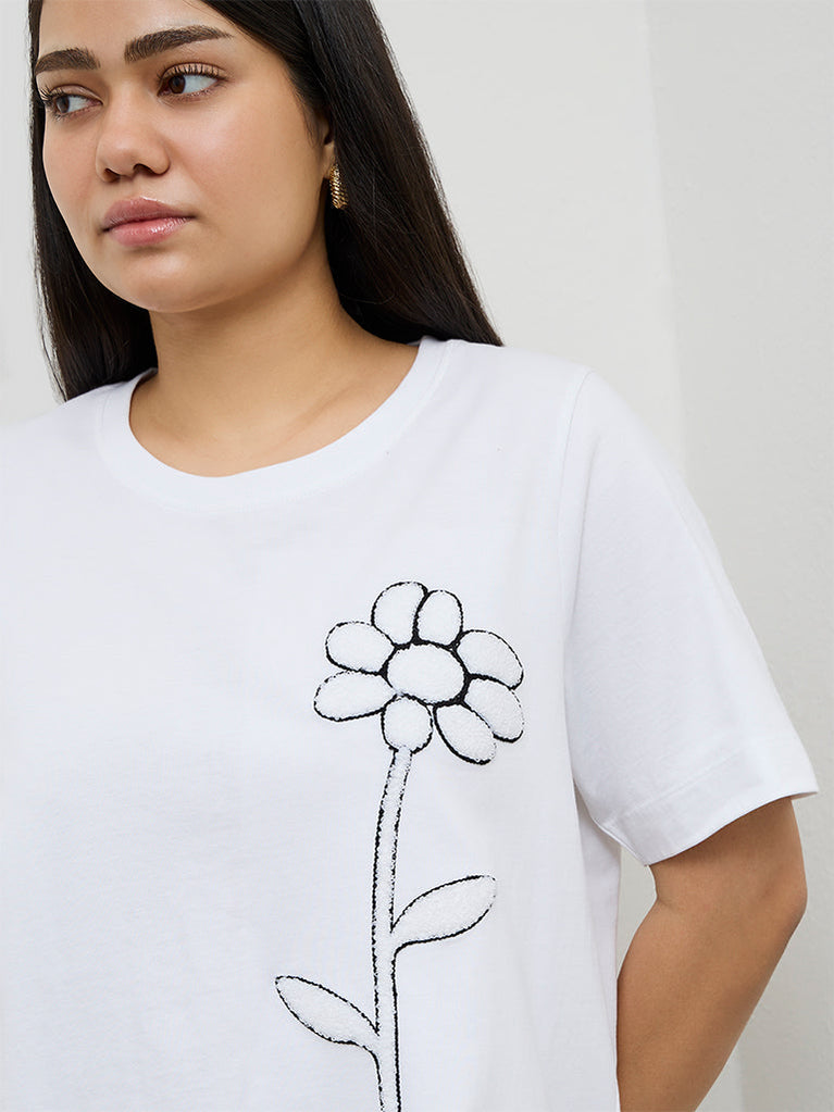 Designed for relaxed, everyday dressing, this white t-shirt from Gia is shaped with a round neck and short sleeves for a minimalist design. Crafted from a soft, breathable fabric, it feels light on the skin for extended wear. The floral motif adds an elevated detail.