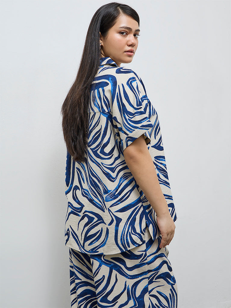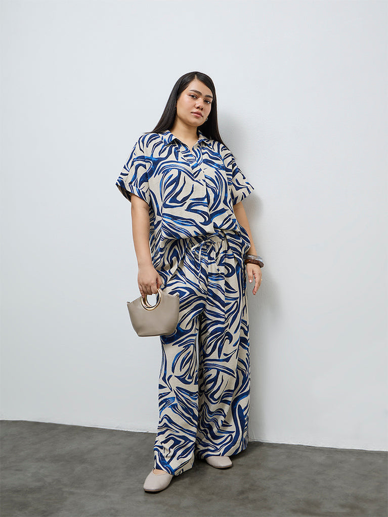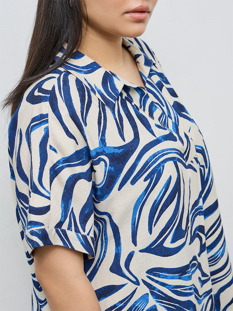 Elevate everyday dressing with this navy blouse from Gia, showcasing abstract motifs for a modern edge. Made from a breathable fabric, it offers comfort without sacrificing polish. The collared neckline and dolman sleeves create a relaxed yet refined silhouette.