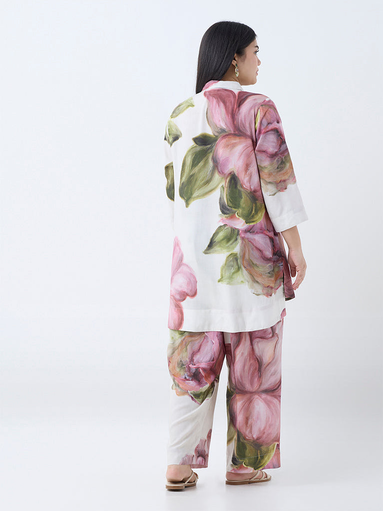 Diza brings you this charming red tunic adorned with delicate floral prints for a refreshing appeal. Designed with a graceful V-neck secured with a single button and three-quarter sleeves featuring upturned hems, it’s perfect for chic and versatile styling.