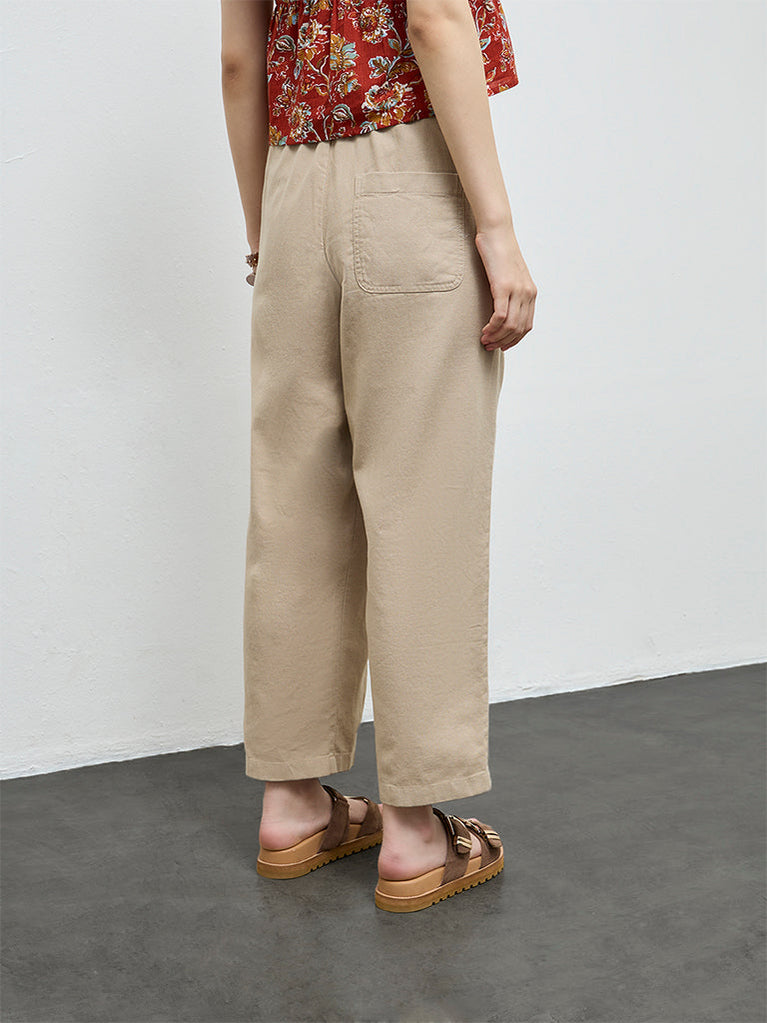 Bombay Paisley Beige Solid Cotton-Blend Pants