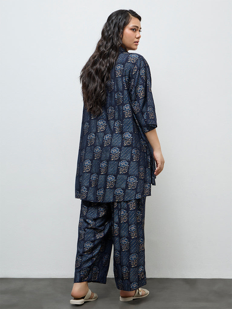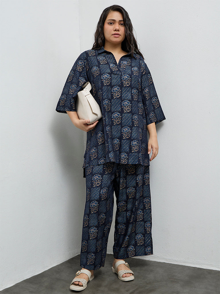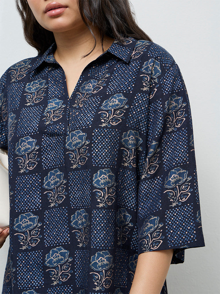 Diza Dark Blue Floral Printed High-Low Tunic