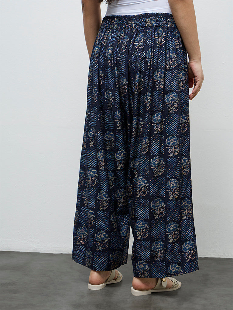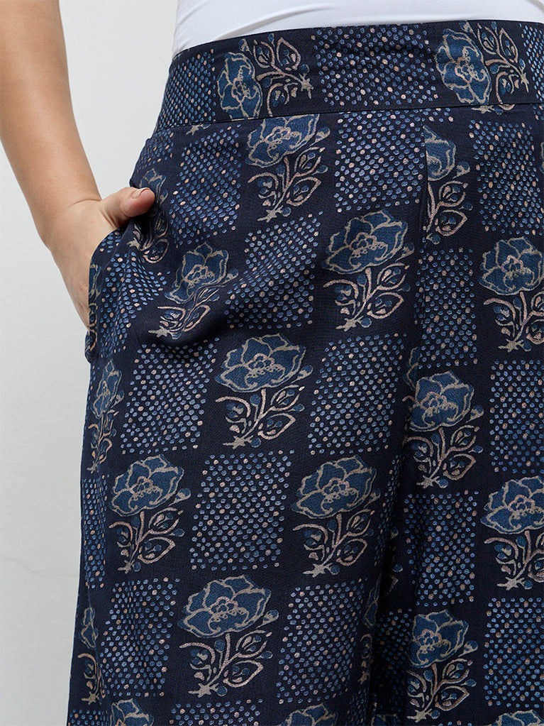 Diza Dark Blue Printed Pants