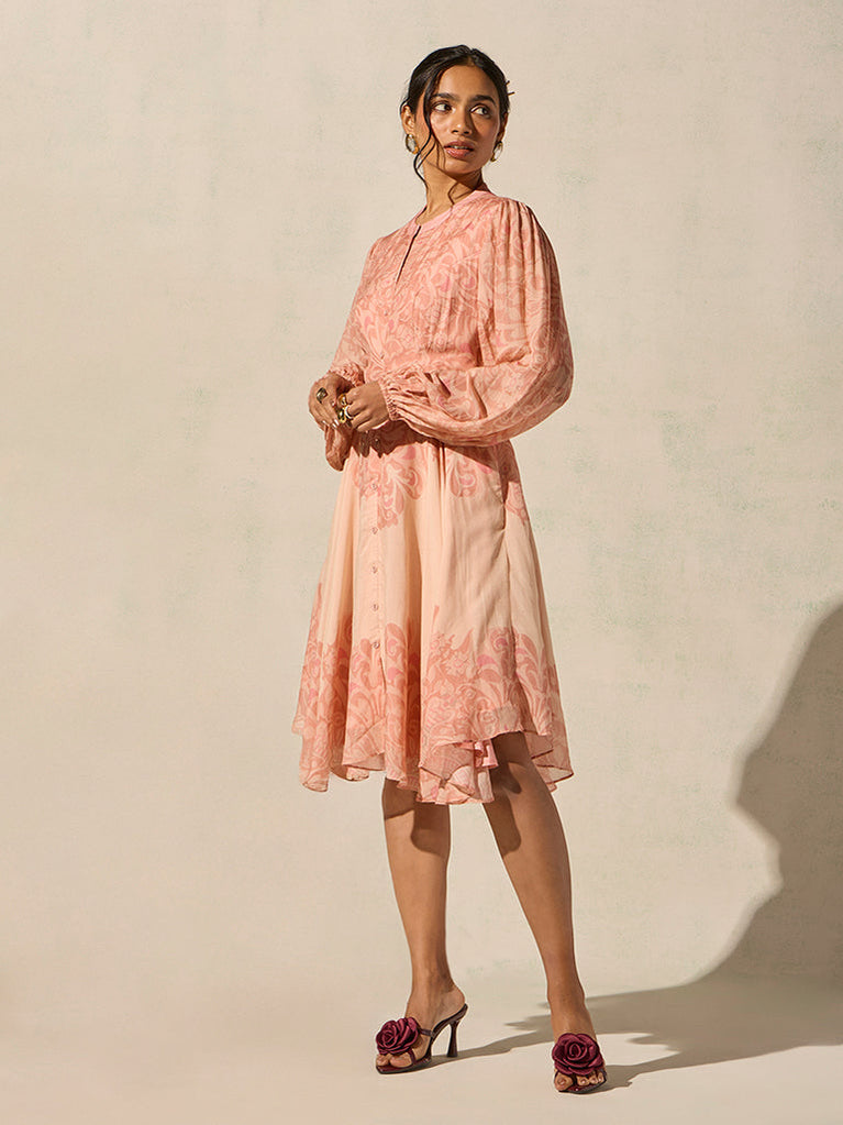 Bombay Paisley Peach Floral Cotton A-Line Dress