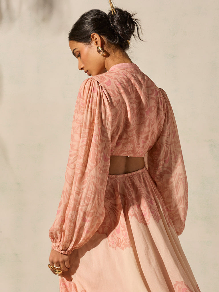 Brunch plans feel instantly elevated with this pink dress designed for effortless daytime charm. Spun from a lightweight fabric, it features a round neckline, voluminous balloon sleeves, and a flattering cut-out detail at the back that adds a modern touch. Finished with dual side zipper closures for ease of wear and functional pockets for everyday convenience, the silhouette balances style with comfort beautifully.