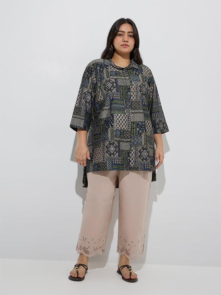 These beige ethnic pants from Diza are detailed with elegant embroidery and schiffli accents along the hemline. Milled from a cotton-rich fabric for lasting comfort, they feature an elasticated waistband and adjustable drawstrings to ensure a customised fit.