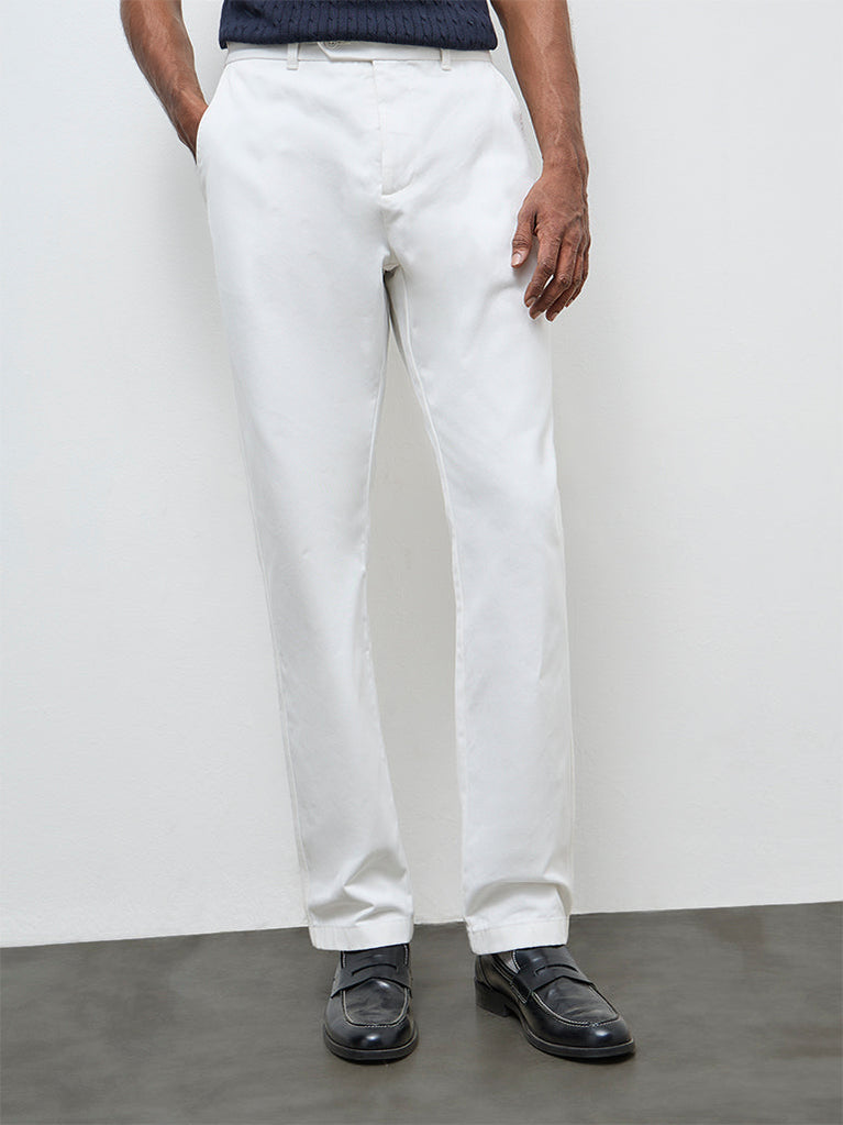 Ascot White Relaxed-Fit Mid-Rise Cotton Trousers