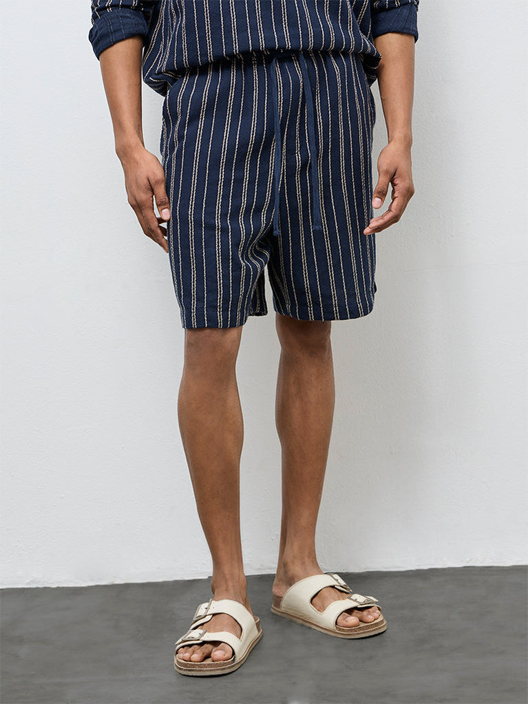 ETA Navy Striped Relaxed-Fit Mid-Rise Cotton Shorts