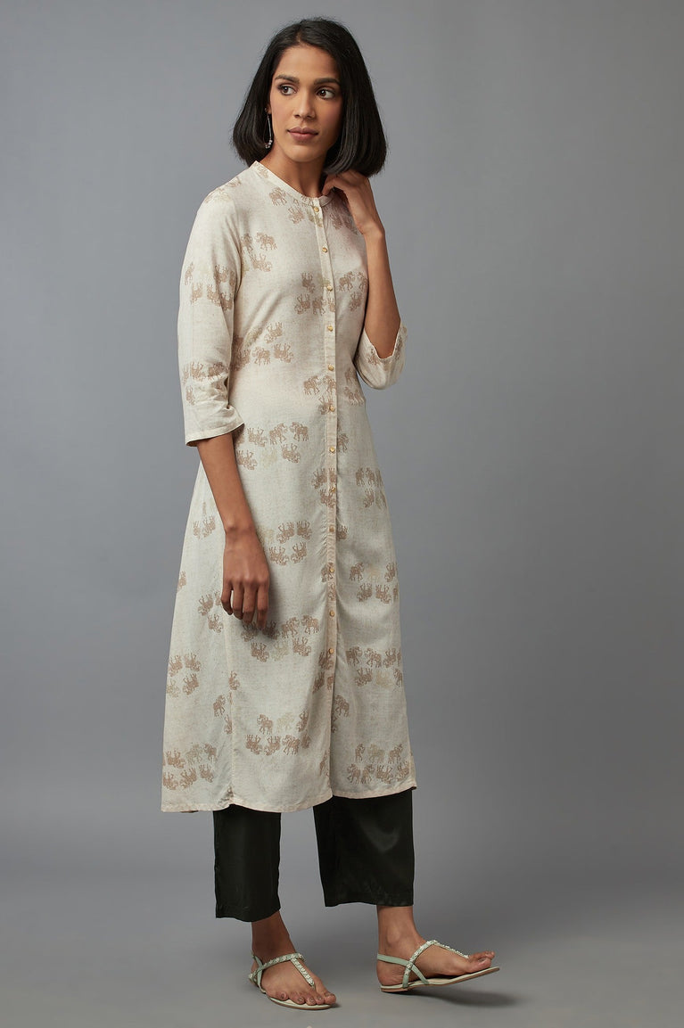 Beige Cotton Front-Open Straight Kurta