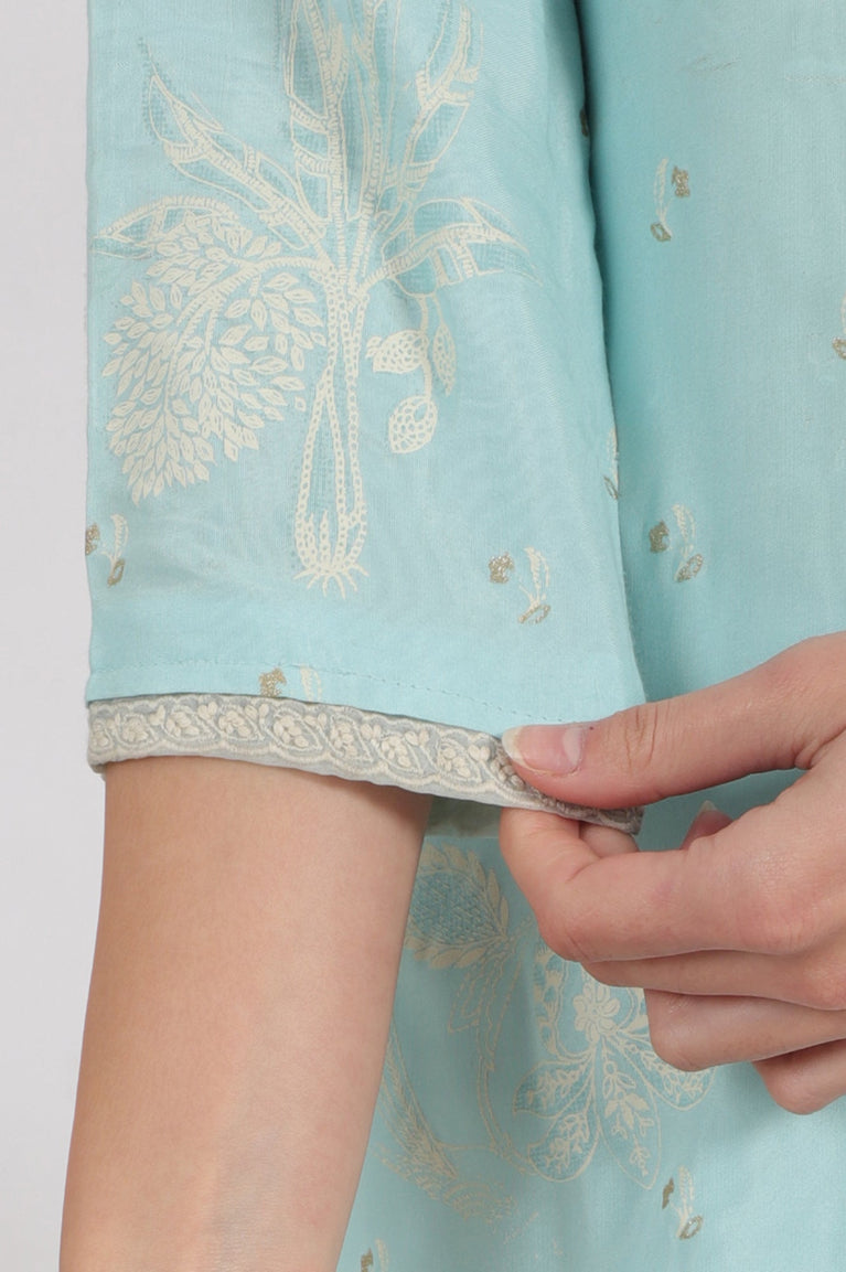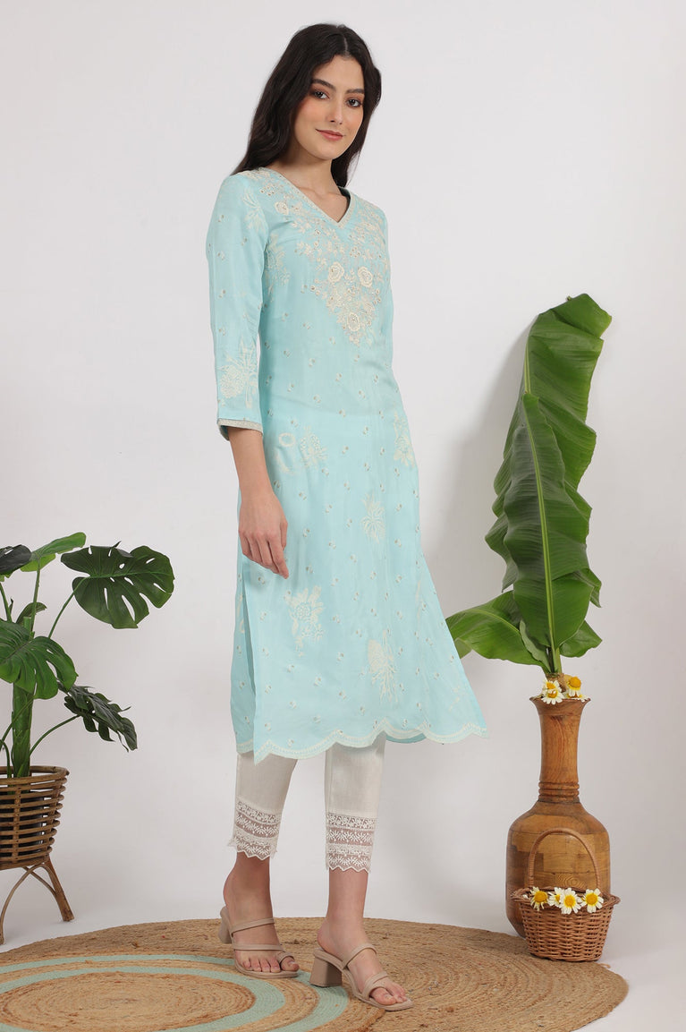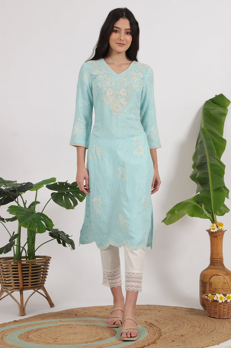 Blue Embroidered Rayon Straight Festive Kurta