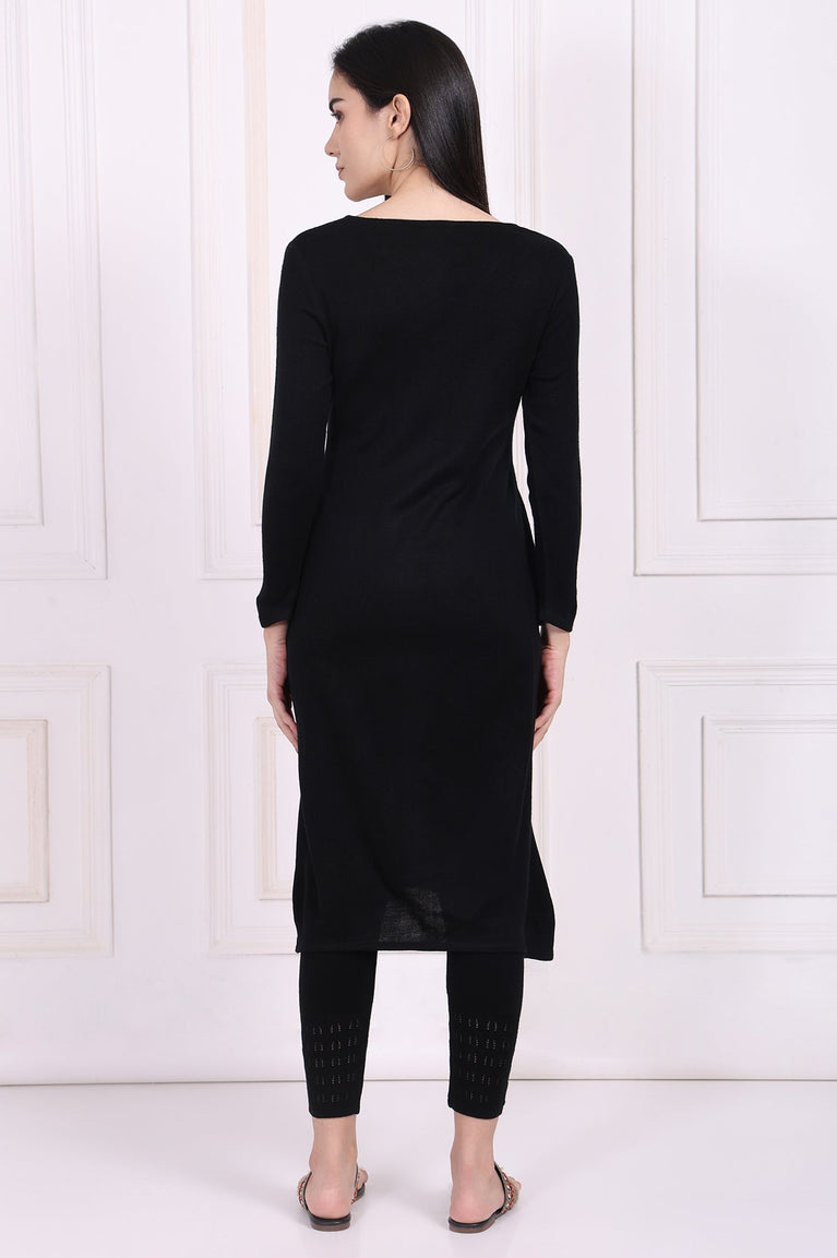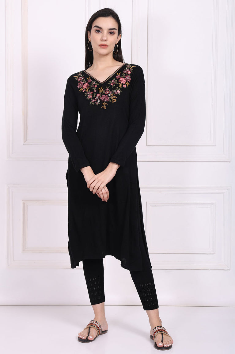 Black Embroidered Straight Acrylic Winter Kurta