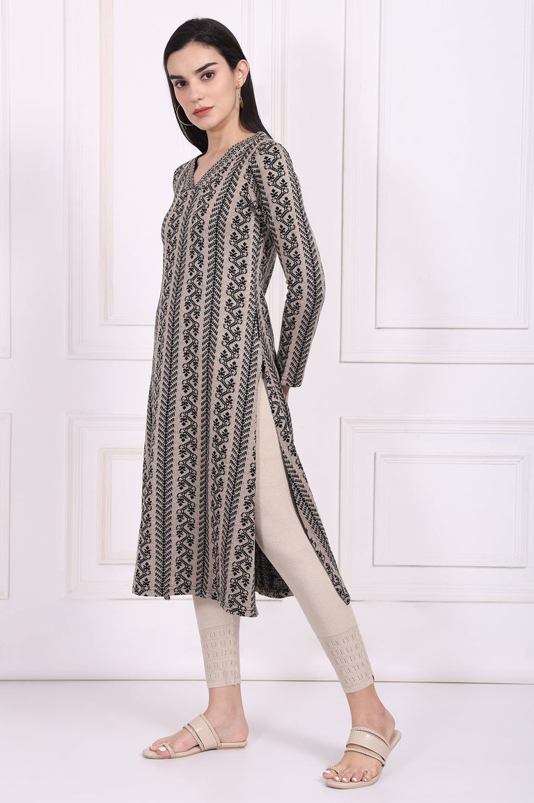Beige Geometric A-Line Acrylic Winter Kurta