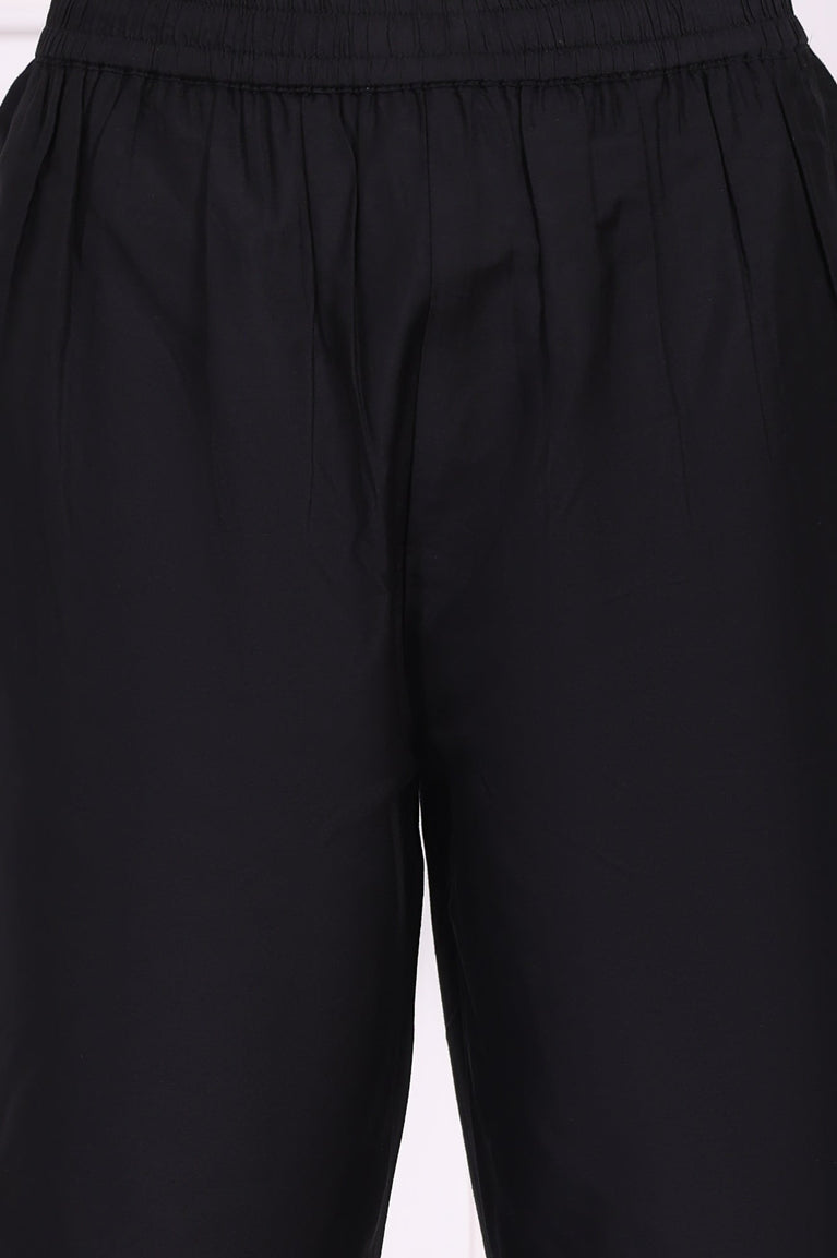 Black Embroidered Straight Kurta with Straight Pant and Dupatta Set