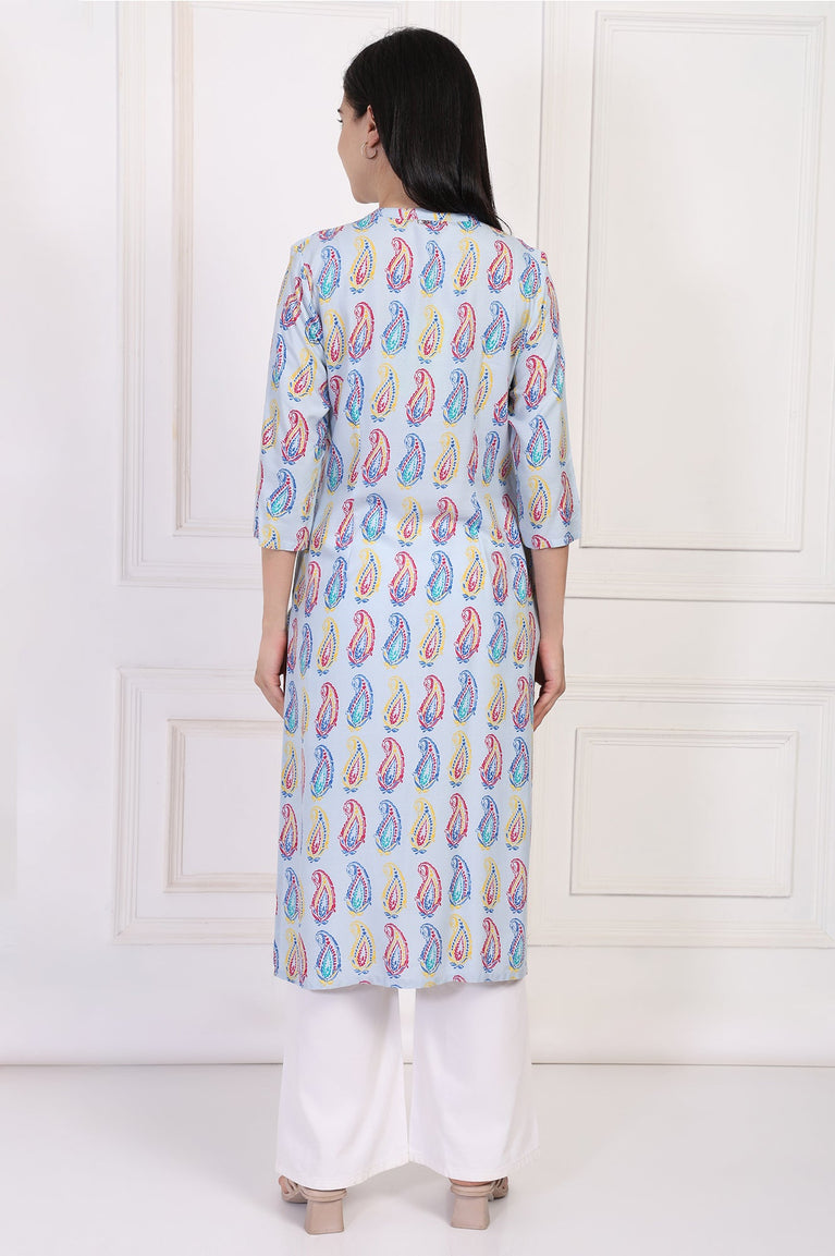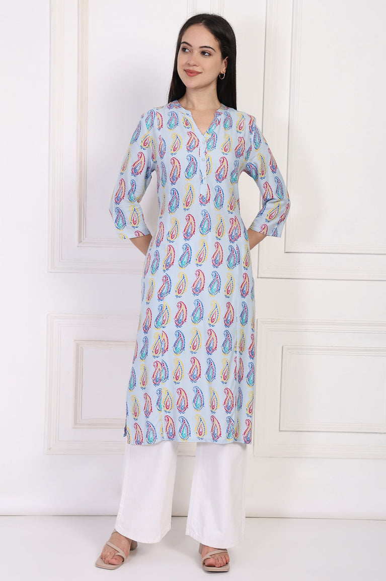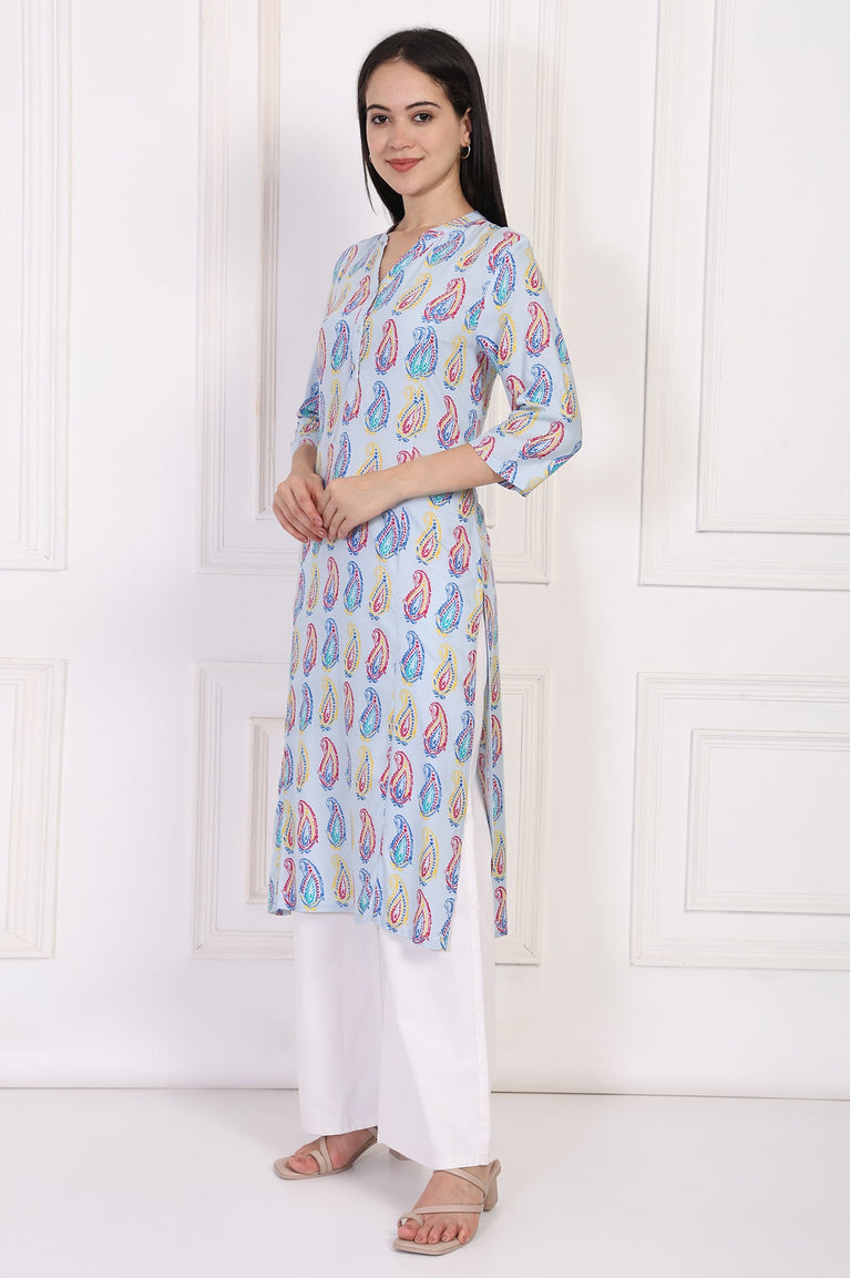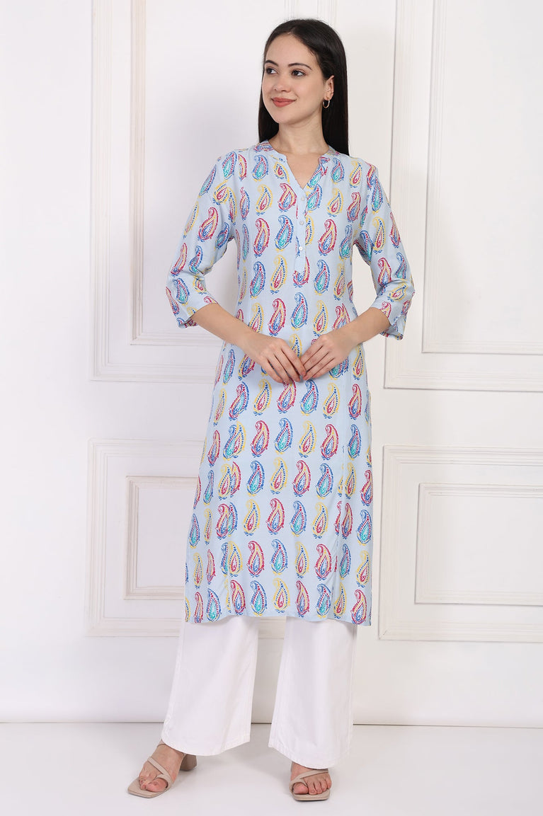 Blue Paisley Printed Straight Rayon Kurta