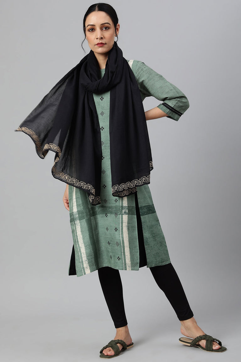 Simple Yet Stylish, This Black Cotton Embroidered Dupatta Is A Must-Have In Your Wardrobe.