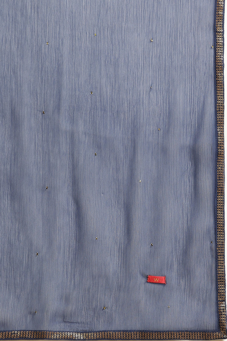 Ink Blue Chiffon Drape With Mukaish. It Has A Metallic Sequin Tape On All Sides.