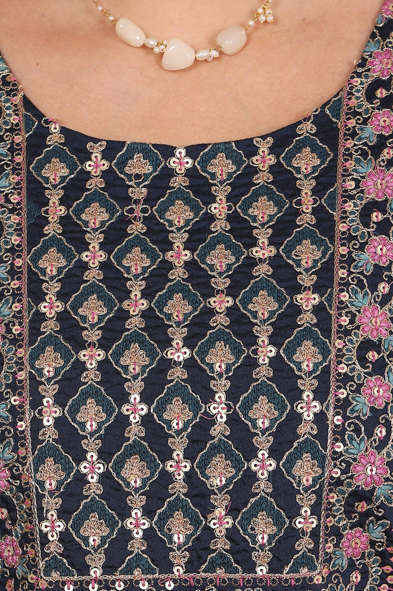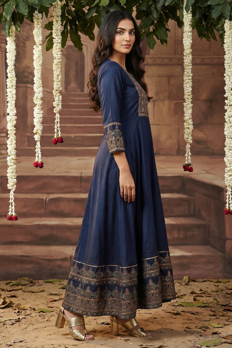 Navy Blue Embroidered Anarkali Dress