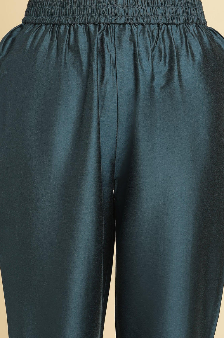 Ink Blue Solid Straight Pants Adorned With Metallic Sequin Work. It Has A Mid Rise Waist And Is Partially Elasticated.