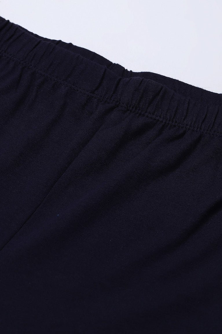 Blue Solid Skinny Fit Cotton Tights With Elasticated Waistband