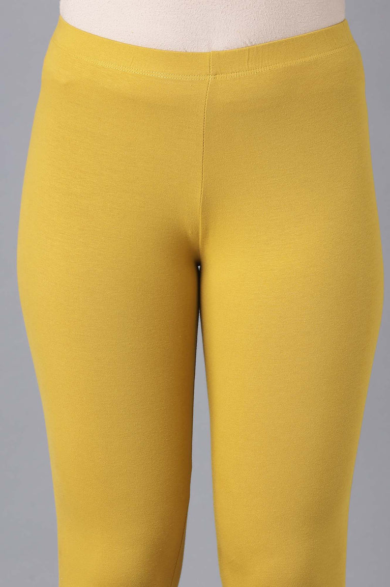 Yellow Solid Skinny Cotton Cropped Tights With Elasticated Waist
