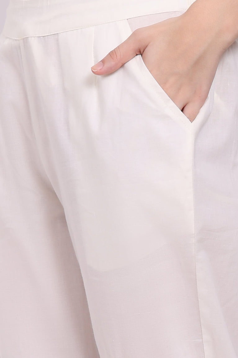 White Solid Straight Fit Palazzo With Elasticated Waistband