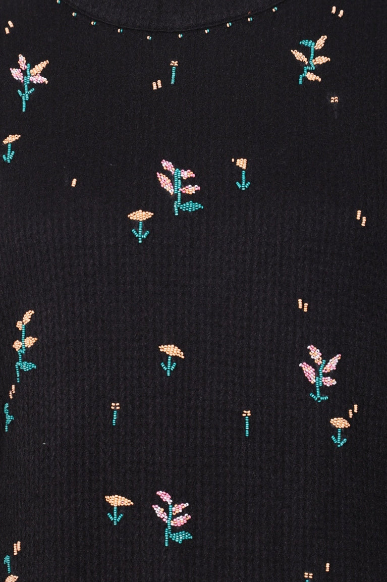 Black Yarn Dyed Embroidered Rayon Blend A-line Winter Dress