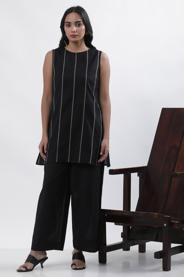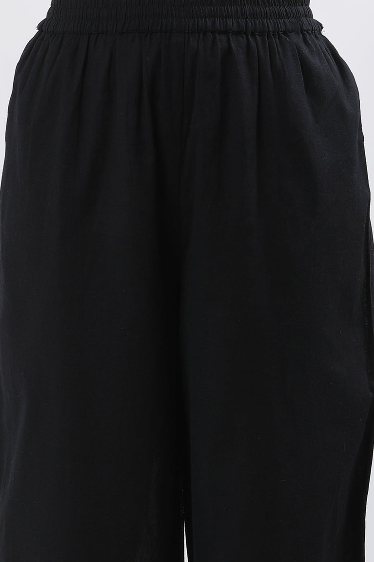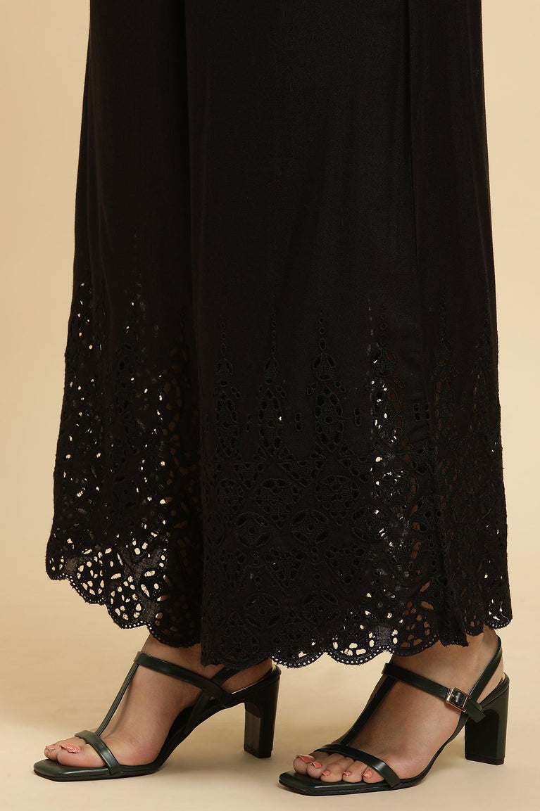 Black Cotton Schiffli Top And Pants Co-Ord Set