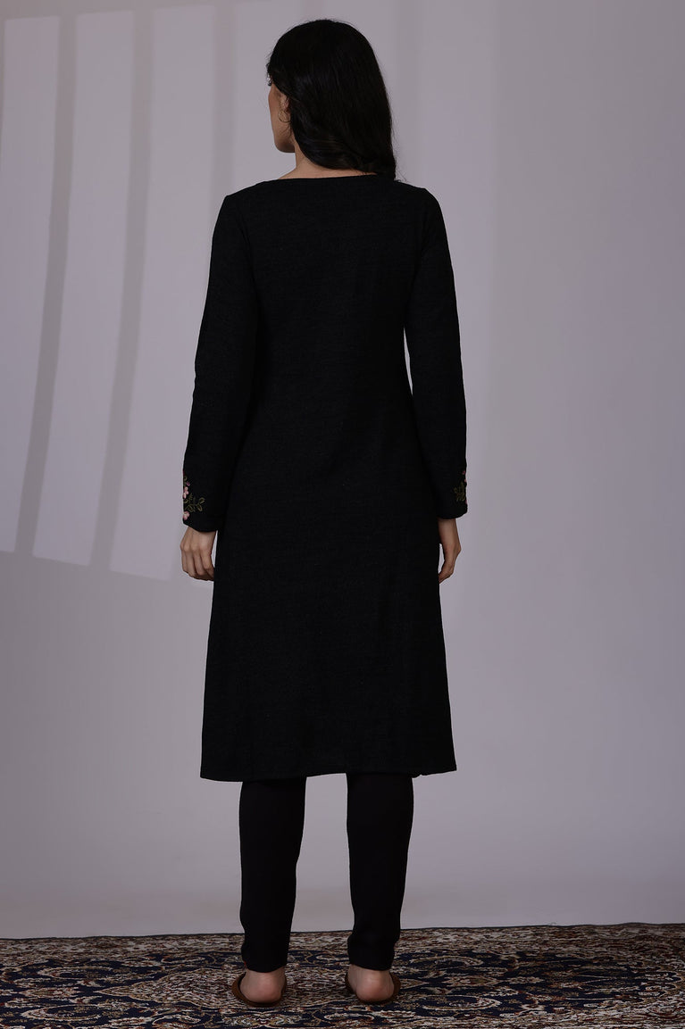 Discover the perfect fusion of style and comfort with this stunning knee-length kurta from W. Designed for the modern woman who appreciates both tradition and contemporary fashion, this anthracite-colored kurta is a versatile addition to your casual wardrobe. Crafted from 100% acrylic, this knitted kurta offers a soft and cozy feel against your skin. The A-line silhouette flatters various body types, while the full sleeves provide elegance and modesty. A striking V-neckline adds a touch of allure, beautifully complemented by intricate thread work that showcases the brand's attention to detail. The kurta features a stylish slit, adding movement and ease to your stride. Perfect for casual outings or relaxed gatherings, this fusion piece effortlessly blends ethnic charm with modern sensibilities. The anthracite color lends a sophisticated touch, making it easy to accessorize with both traditional and contemporary jewelry. Whether paired with leggings, palazzo pants, or jeans, this versatile kurta allows you to create multiple looks for different occasions. The acrylic fabric ensures easy care and maintenance, making it a practical choice for your everyday wardrobe. Embrace the perfect balance of comfort, style, and tradition with this exquisite kurta from W.
