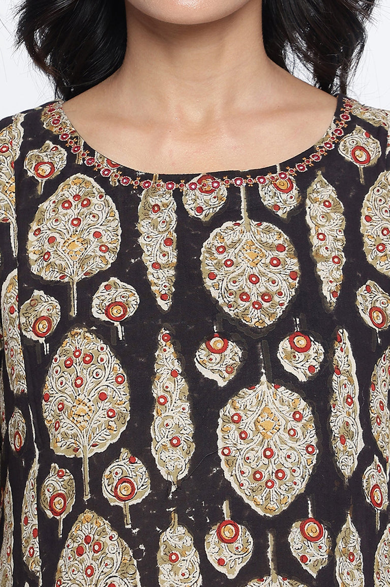 Bring effortless charm to your everyday ethnic wardrobe with this flared kurta in breathable pure cotton. Featuring subtle prints in a rich black hue, this kurta blends traditional elegance with contemporary flair. The flared silhouette offers ease of movement and a flattering fit, making it ideal for long days at work or festive family gatherings. Thoughtfully crafted with fine detailing, it ensures comfort without compromising on style. Whether paired with leggings or palazzos, this kurta for women will elevate your seasonal dressing. It’s a timeless pick for those who love easy elegance in pure cotton.